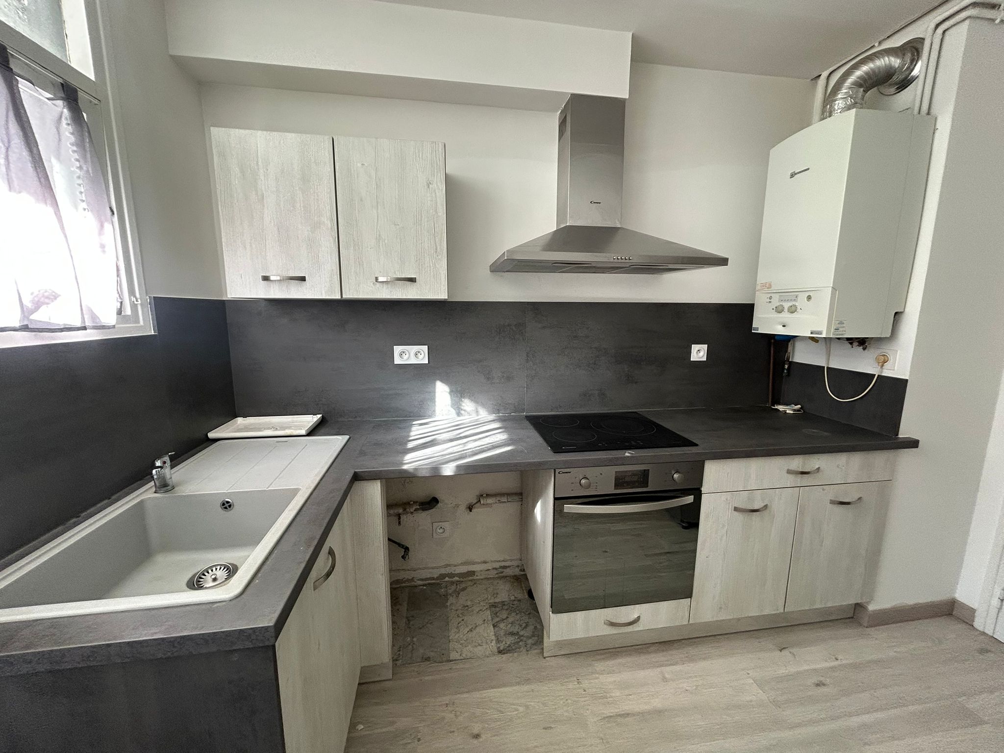 Il comprend un hall d’entrée, un séjour, une cuisine aménagée avec un loggia, deux chambres, une salle d’eau et WC séparé.